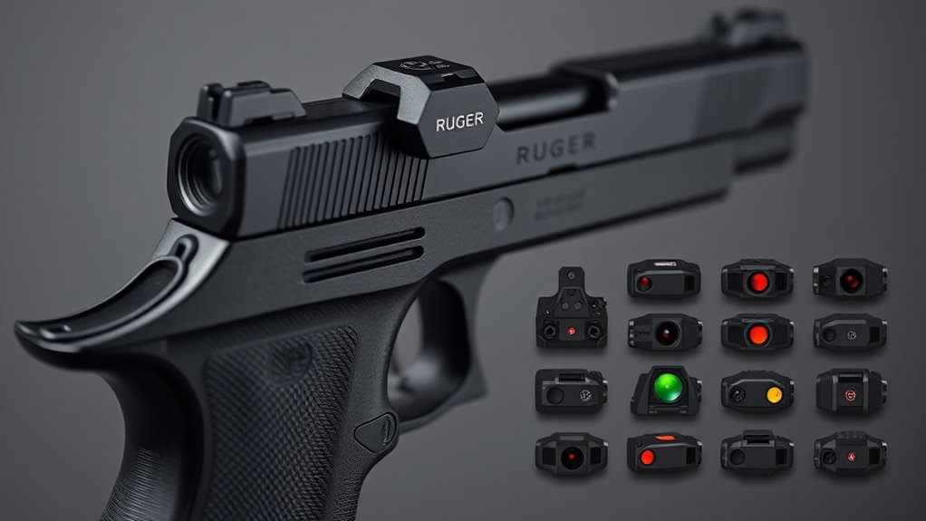 Durability and weatherproofing aren’t afterthoughts; they’re essential for reliable field use on the Ruger LCP Max. You want a sight built from high-quality materials, like aluminum or stainless steel, to withstand impacts and rough handling. Look for weatherproofing ratings such as IPX7 or IPX6, so the sight resists water, dust, and debris in varied outdoor environments.