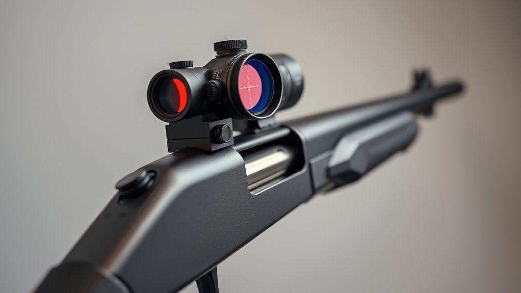 When you pick a red dot for a shotgun, start with mounting compatibility to guarantee secure fit and repeatable zero. Consider reticle clarity, battery life, and illumination options so you don’t lose sight of your target in variable light or long sessions.