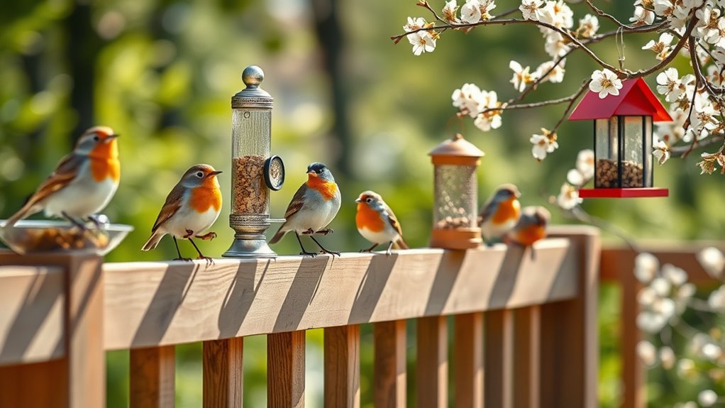 Look for 3–5 foot placement, 360-degree perches, and easy refills with wide openings. If you keep exploring, you’ll uncover specifics on capacity, materials, and maintenance that fit your yard.