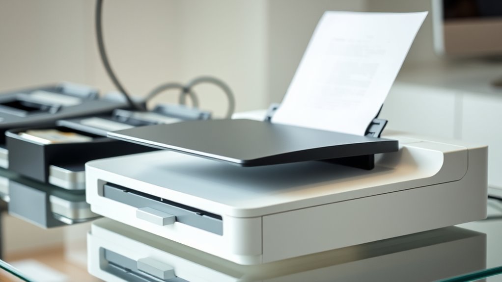 A scanner’s auto document feeder (ADF) capacity is a crucial factor shaping your workflow, because a higher sheet count means fewer reloads and faster batch processing. Your choice affects how many pages you can scan in one go, reducing interruptions during large jobs.