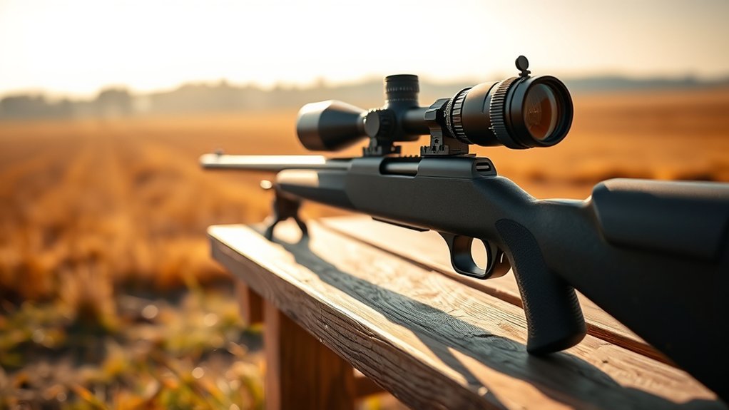 Choosing the right magnification range plays a crucial role in hitting targets accurately at 300 yards. You’ll want a scope offering between 3x and 9x magnification to guarantee clear target visibility without sacrificing situational awareness.