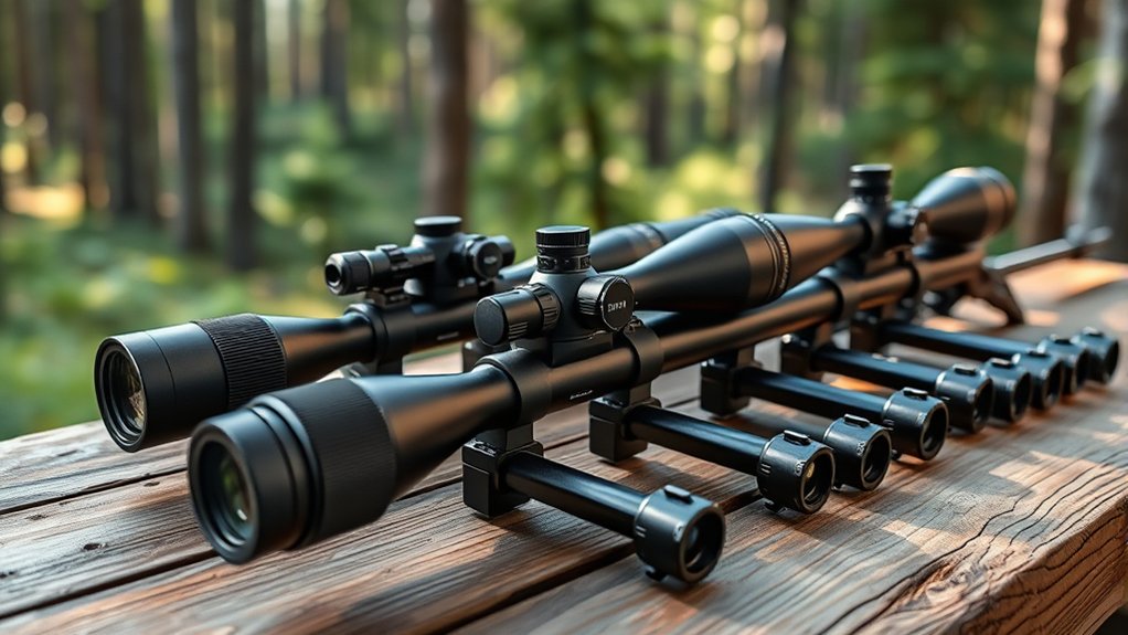 Also, guarantee the scope performs reliably in extreme temperatures, whether it’s cold, snow, or humidity. By prioritizing these weather resistance features, you’ll keep your scope functioning perfectly no matter the environment you hunt in.