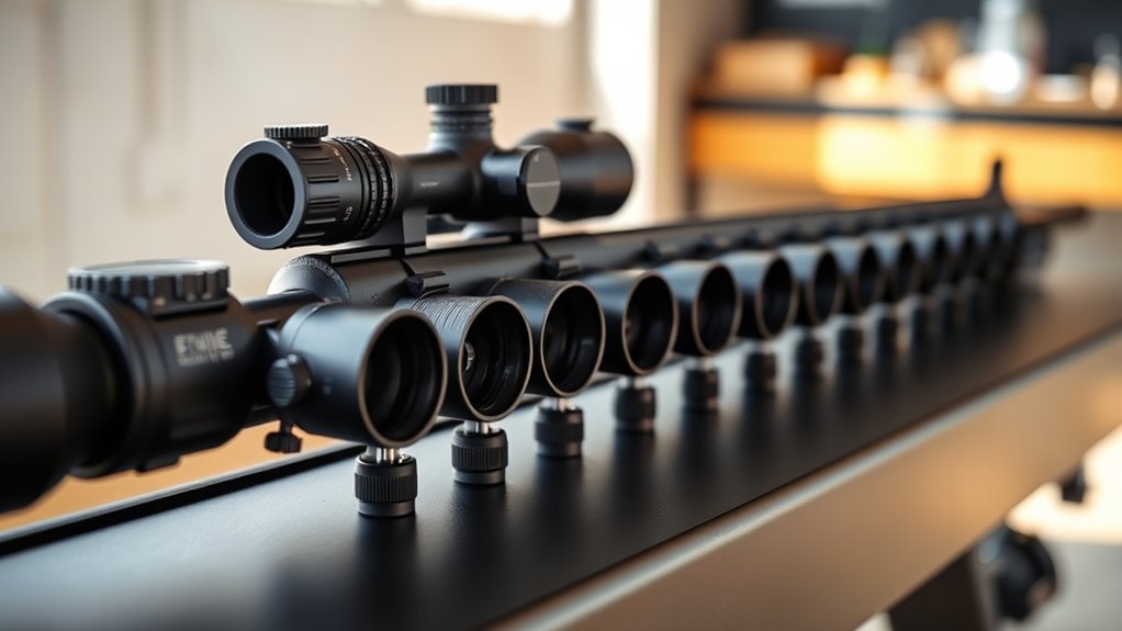 Finally, prioritize mounts that offer solid stability with minimal movement under recoil, keeping your accuracy intact throughout competition stages. Getting these right ensures your scope stays secure and performs reliably.