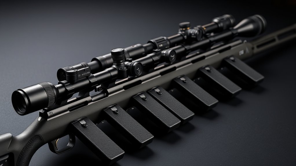 Although scout rifles excel in versatility, choosing the right magnification range for your scope plays a crucial role in maximizing their effectiveness. Scout scopes usually offer between 2x and 7x magnification, striking a balance between close and medium-range shooting. You’ll want a lower magnification setting, around 2x to 4x, for quick target acquisition and maintaining situational awareness.