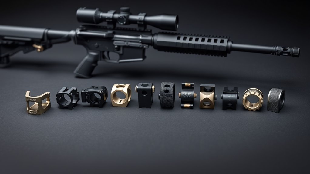 These lightweight, corrosion-resistant mounts guarantee your scope stays zeroed. Keep exploring to discover features that tailor perfectly to your shooting style and needs.