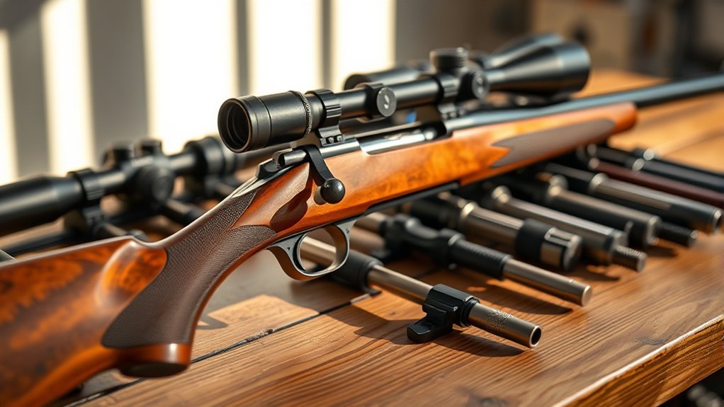 Finally, think about tube diameter. A 1-inch or 30mm tube affects weight and mounting options, with larger diameters often improving light transmission. Balancing these factors guarantees your scope fits perfectly and performs reliably.