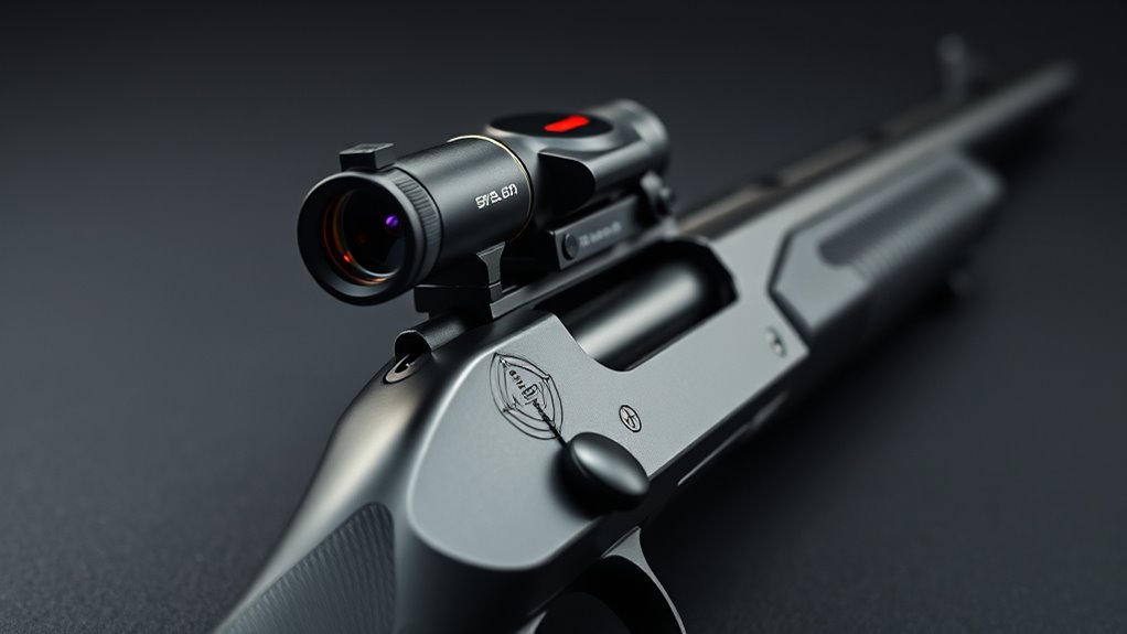 Fixed mounts designed specifically for shotguns can enhance stability and keep your sight zeroed through recoil. Also, consider the mount’s weight and height since these affect your shotgun’s balance and your ability to aim quickly. Finally, guarantee the mounting system allows easy windage and elevation adjustments so you can fine-tune your sight for accurate targeting when it matters most.