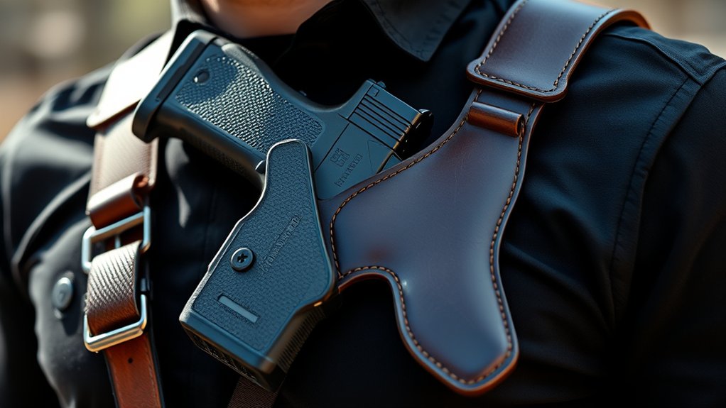 Balancing concealment and accessibility often comes down to how well your shoulder holster fits and adjusts to your body and clothing. Look for adjustable straps that let you customize the fit, ensuring comfort during long wear and accommodating various body sizes.