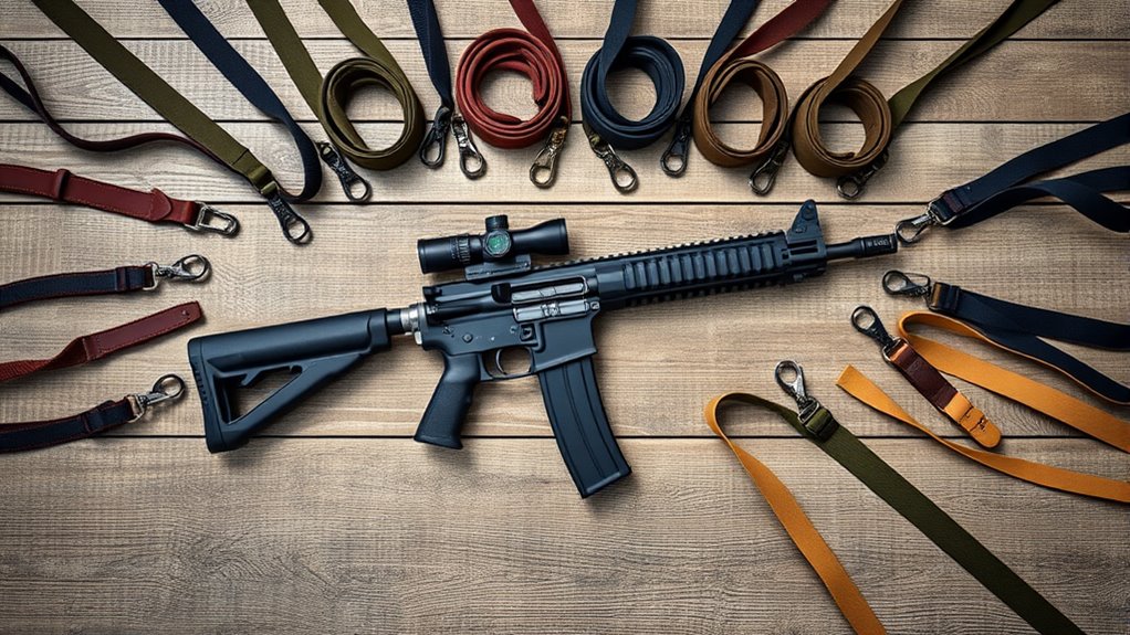 When choosing, look for ambidextrous or left-handed slings to guarantee comfort and quick access. Don’t settle for a right-handed design, as it might hinder your handling and overall shooting experience.