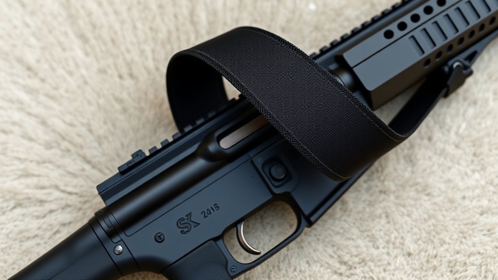 You’ll find that quality slings also incorporate breathable materials, which prevent excessive sweating and discomfort over extended periods. Overall, they’re built to keep you comfortable, even during long shooting sessions.