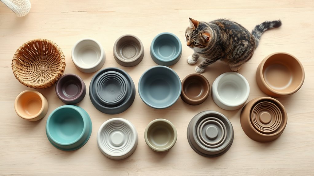 Ceramic bowls offer stability, tilt, and cheery pastel designs, while many sets include multi-piece configurations for households with several cats.