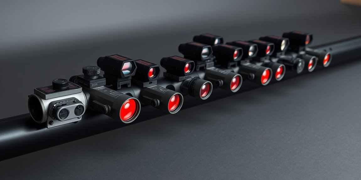 A versatile reticle system lets you switch between dots, circles, or combined patterns to match different shooting scenarios. You’ll appreciate multi-reticle configurations that let you switch between precise long-range targeting and quick close-quarters engagement without swapping optics. Reticle brightness and pattern adjustments should be easily accessible so you can optimize visibility across changing lighting conditions.