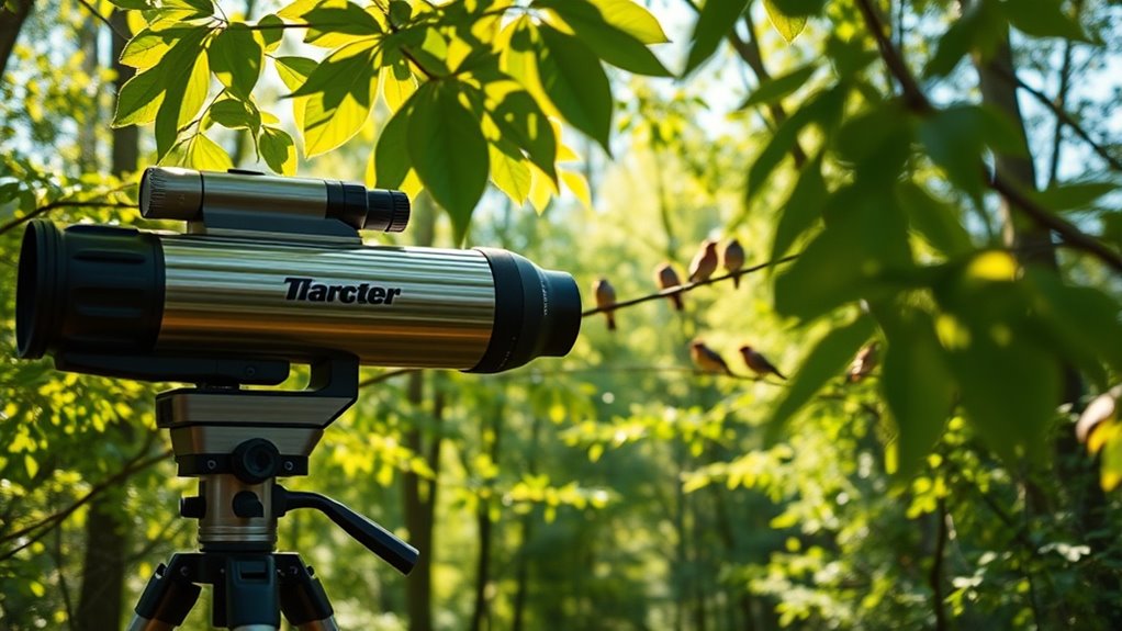 Plus, accessories like tripods and phone adapters can boost your experience. Keep exploring to discover the top choices tailored for bird enthusiasts.