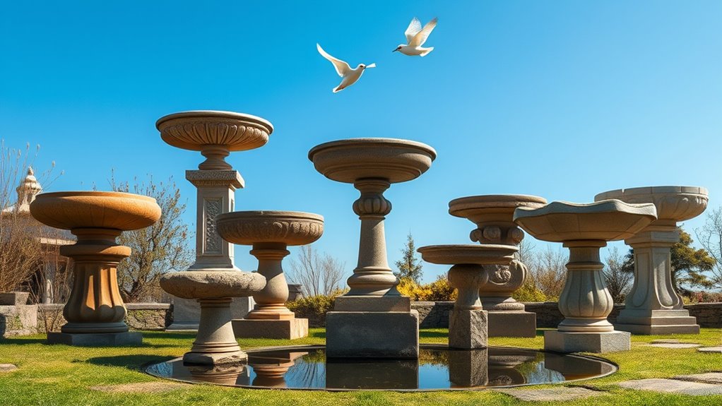 Discover the 15 best stone bird baths for 2026, featuring durable materials like fiberclay, polyresin, and concrete for outdoor resilience. You’ll find varying sizes—from 16 to 30 inches tall—with shallow basins and 0.8–4.73 liter capacities to suit different birds.