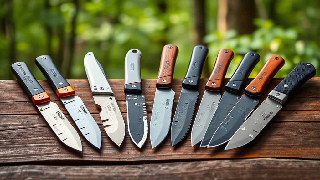 Although blade design plays a crucial role, the material quality ultimately determines how well your survival knife performs under tough conditions. You’ll find high-quality blades made from stainless steel, carbon steel, or specialty alloys, each affecting durability and edge retention differently.