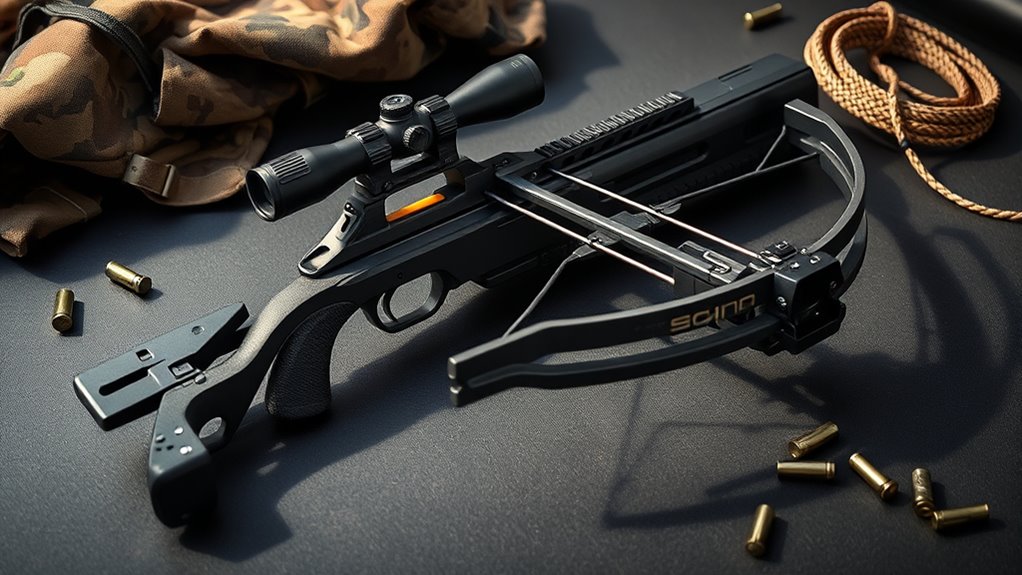 Plus, the ability to easily replace or upgrade components extends your crossbow’s lifespan and adaptability, so your investment remains effective for years to come. Prioritize customization and accessories to maximize your tactical crossbow’s potential.