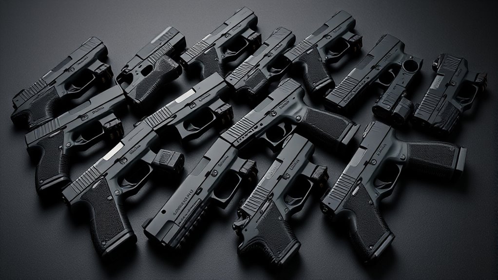 Pay close attention to the barrel, typically made of steel, since it impacts accuracy, velocity, and longevity during repeated use. Finally, manufacturing precision and material integrity ensure your handgun performs consistently and safely under tactical conditions, giving you confidence when it matters most.