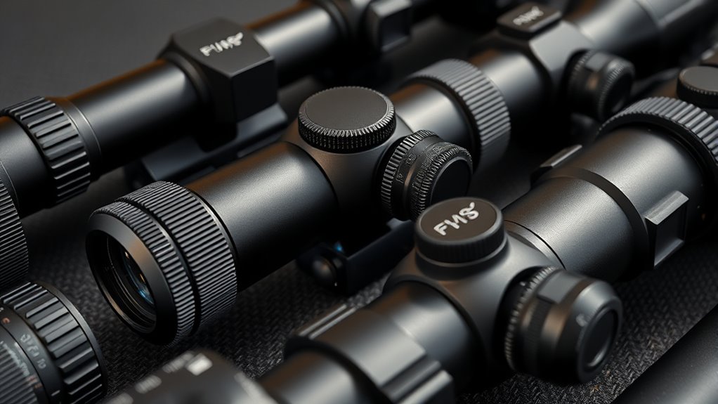 Multi-color illumination options, such as red and green, offer flexibility to adapt to various environmental lighting and personal preferences. Second focal plane reticles stay the same size across magnifications, aiding consistent accuracy at different ranges. Ultimately, your choice should match your shooting scenario—whether tactical, hunting, or competition—ensuring ideal, quick target acquisition, and precise aiming in diverse conditions.