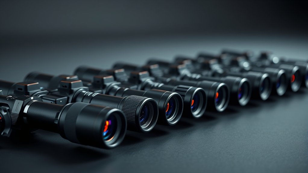 Furthermore, integrated features like remote controls or mobile app connectivity allow you to adjust settings without repositioning the scope, saving you time and effort in the field. Prioritizing these user interface and control elements guarantees you stay focused and efficient, no matter the environment or lighting conditions.