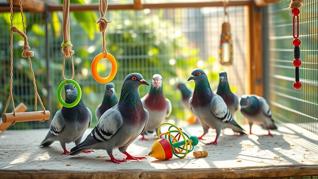 These prevent accidental poisoning and injuries, ensuring your birds stay busy and healthy. Remember, your pigeons deserve toys, not toxic hazards disguised as fun!
