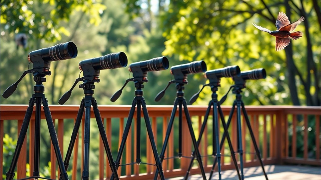 Tripods that come with carrying bags add convenience by protecting your gear and keeping it accessible when you’re on the move. Prioritizing portability and weight guarantees you can focus on capturing birds, not wrestling with your equipment.