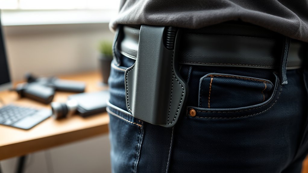 Choosing a holster with customizable carry options guarantees you maintain both accessibility and concealment, making your everyday carry experience more comfortable and efficient.