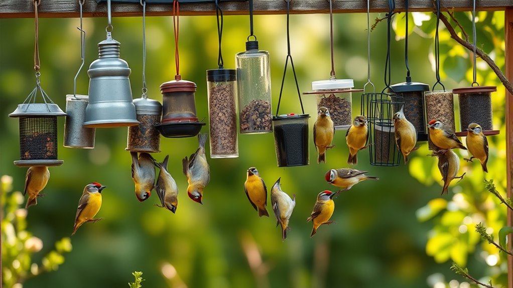 They’re designed to be easy to clean with removable tops and trays, and many curb larger birds while encouraging natural feeding postures. Keep exploring to uncover more top picks and tips.