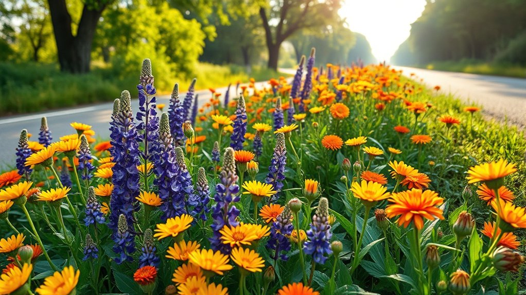 Keep exploring to discover which mix best fits your landscape needs and how to achieve vibrant, sustainable roadside wildflower displays.