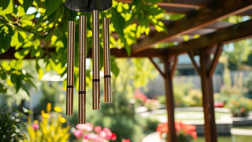 If you want wind chimes that soothe your soul in 2026, look for ones made from weather-resistant materials like anodized aluminum or bamboo, which deliver clear, calming tones. Choose chimes tuned to pentatonic or diatonic scales for peaceful melodies, with varied tube lengths for rich sounds.