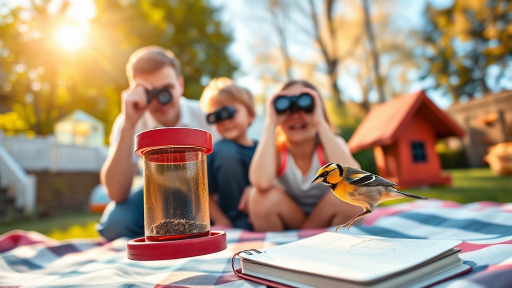 When kids engage in birdwatching through games and challenges, their curiosity and observation skills soar. You can make birding exciting by organizing a scavenger hunt or a photography challenge. Bird bingo helps them spot behaviors or colors, while nature journals let kids capture their discoveries creatively. Try a blindfold game to boost their listening skills too.