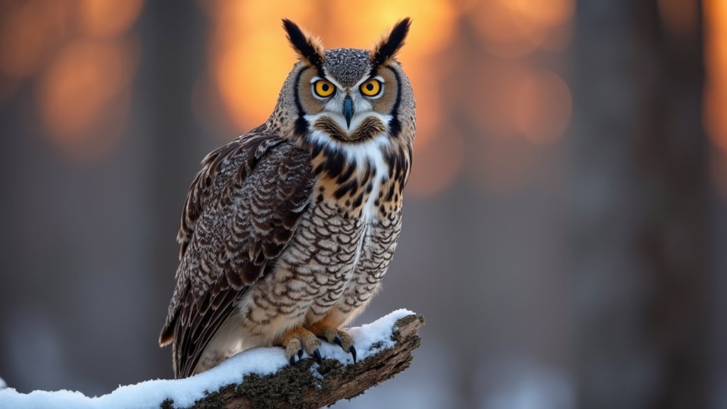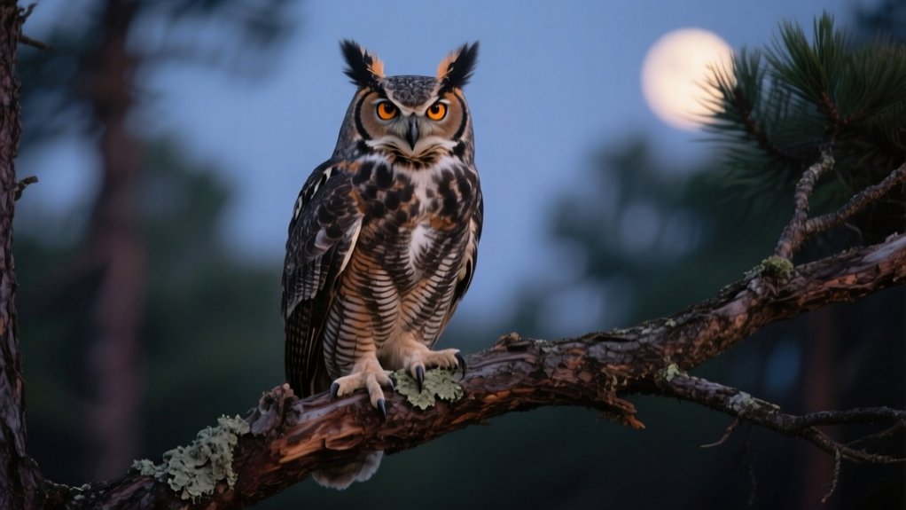 Understanding these silent flight adaptations helps you appreciate how Great Horned Owls maintain their role as apex nocturnal predators through specialized morphological and behavioral traits.
