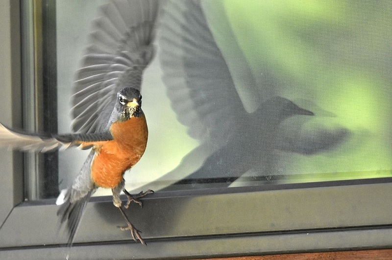 Second, ledges often reflect light or house plants and feeders nearby, which can attract birds looking for food or shelter. The warmth from the building’s exterior can also make ledges comfortable perching spots, especially in cooler weather. Additionally, birds sometimes mistake their reflections in windows for rivals or mates, causing them to linger near the ledges while interacting with what they perceive as other birds.