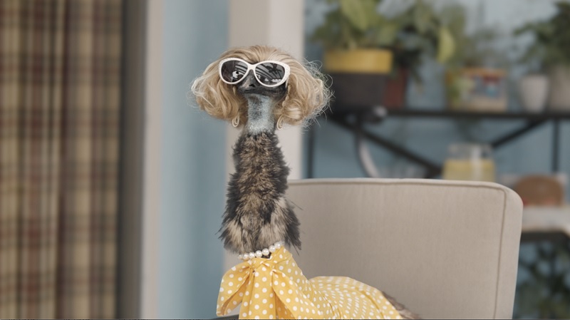 In Liberty Mutual’s early advertising campaigns, the emu was brought to life using a full-body costume worn by a performer. This practical approach allowed for human-like movements and expressions, giving the emu a unique personality that could interact with actors and deliver humorous moments. The costume emphasized the bird’s large size and distinctive look while making it approachable and entertaining.