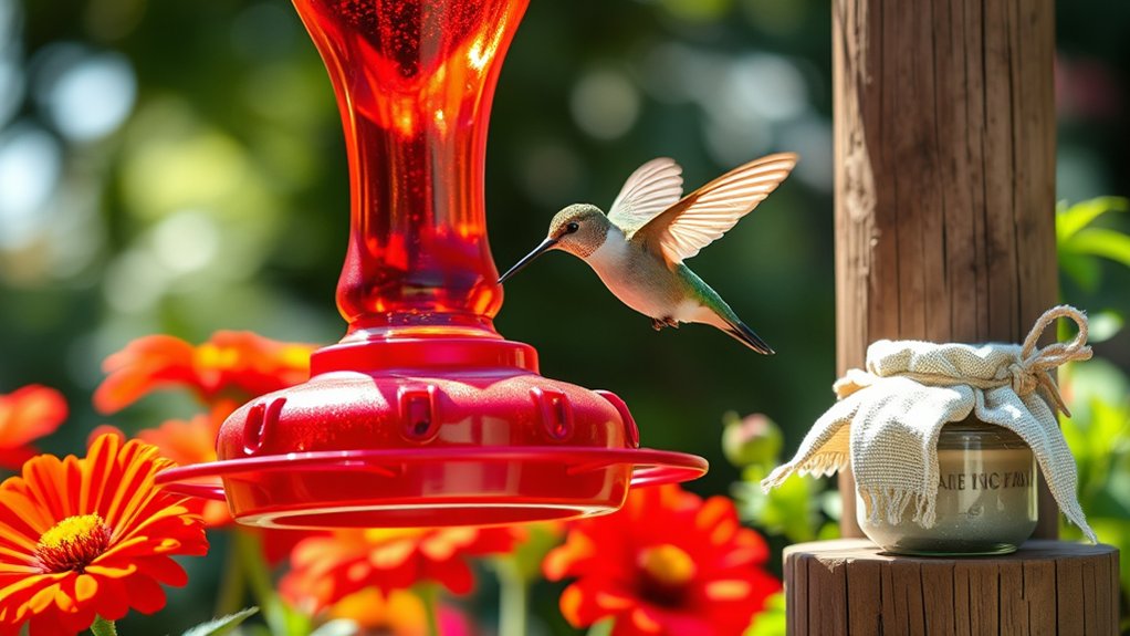 Inspect your feeders frequently for any steady leaks and fix them immediately to avoid inviting unwanted insects. By maintaining leak-free feeders, you not only keep bees and wasps away but also provide a cleaner, safer feeding environment for your hummingbirds.