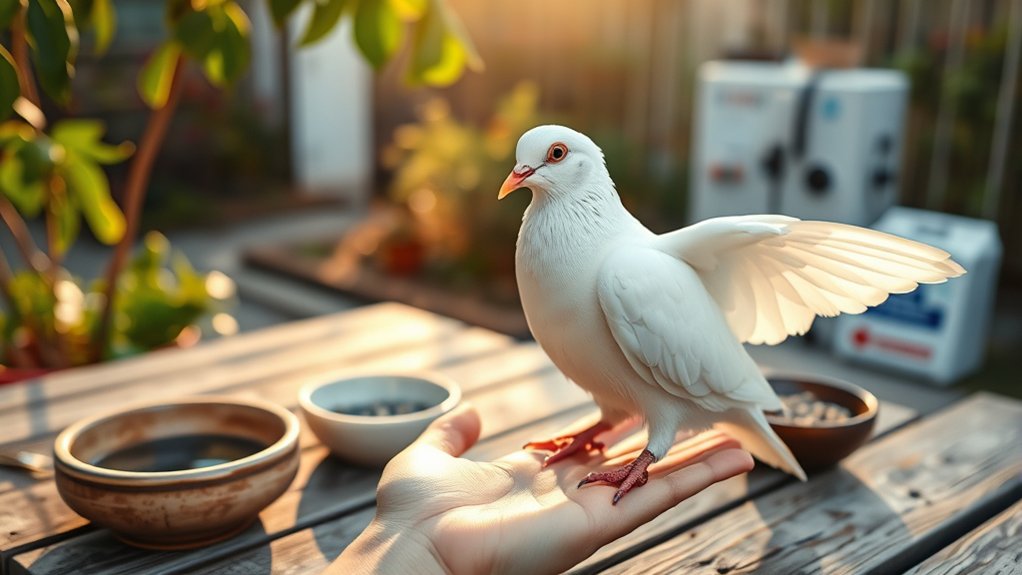Watch for health signs, keep parasites at bay, and maintain a sparkling cage to guarantee your dove sings joyfully. Don’t forget to sprinkle in playtime and affection. Your feathered friend will flourish with your loving touch, turning care into a beautiful song.