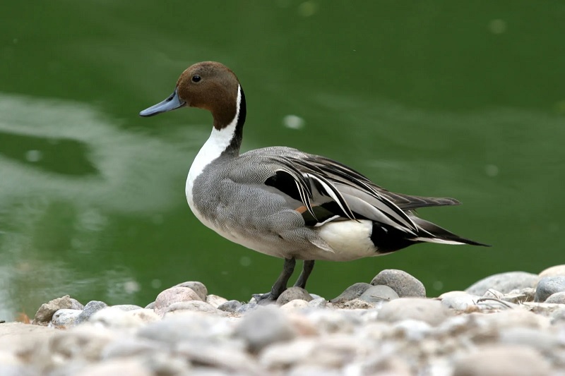 Northern pintails are elegant, long-necked ducks with a sleek appearance and graceful flight. Males have a chocolate-colored head, white neck, and a long, pointed tail feather. They favor shallow wetlands, flooded fields, and estuaries. Pintails are cautious and often approach decoy spreads warily, requiring patience and well-placed shots from hunters.
