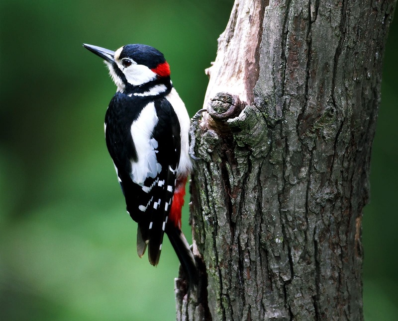 Additionally, woodpeckers have evolved exceptional visual acuity and depth perception to support their lifestyle. Their eyes are positioned on the sides of their heads, giving them a wide field of view to detect predators and navigate through dense forests. Despite the lateral placement, their brains process the input to create a clear, three-dimensional image necessary for accurately targeting insects beneath tree bark.