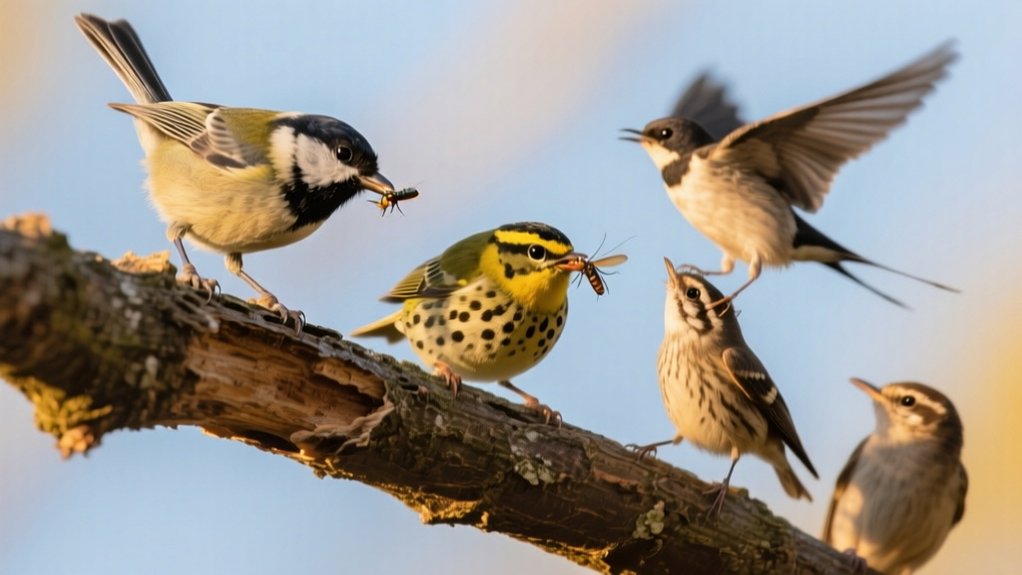You’ll find that these birds exploit diverse foraging techniques to optimize insect intake. They: