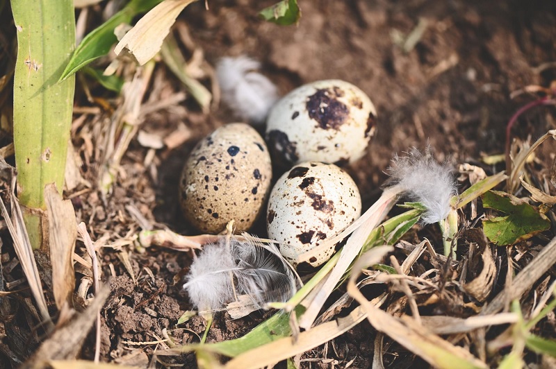 Quail are small, plump birds that create nests in thick brush or grassy areas. Their eggs are usually pale with spots, helping them blend into the leaf litter. Quail hens are known for their secretive behavior, quietly tending to their nests and young to avoid attracting attention.