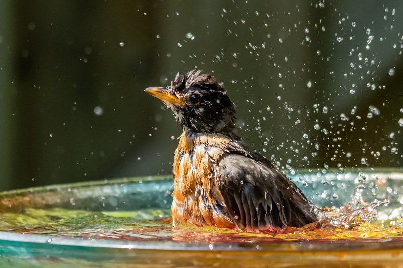 In hot weather, bird baths offer a vital way for birds to regulate their body temperature. Unlike mammals, birds don’t sweat. Instead, they rely on panting and evaporative cooling through their skin and feathers. Taking a quick dip in water helps them cool down, especially during heatwaves when shade and hydration become even more critical.